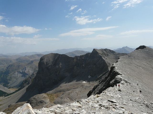 Le chemin vers la Cime des Blanches passe par le Pas des Blanches. Environ 300 m plus loin, on quitte le chemin qui continue jusqu’au Colletto di Panieris sur le versant italien et on  marche sur la crête sans problème bien que sans tracé particulier, jusqu’à la Cime des Blanches.