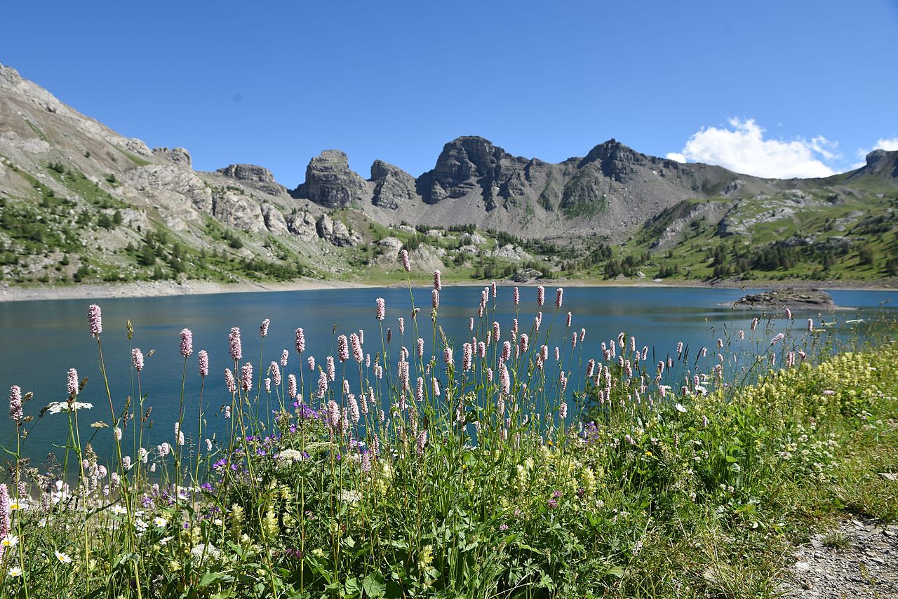 La vallée du Verdon recèle dans sa partie haute des trésors insoupçonnés. L’un des plus significatifs est peut-être l’immense étendue du Lac d’Allos perché à plus de 2200 m. Creusé il y a 20000 ans par un glacier, le plus grand lac naturel des Alpes du Sud a des dimensions impressionnantes : 1200 m de long sur 750 m de large. Niché dans un cirque montagneux superbe dominé par 5 tours aux allures dolomitiques et à l’est par la Montagne de l’Avalanche, le Lac d’Allos est le lac de tous les superlatifs. Sa taille, sa beauté, sa forme parfaite et la présence du Mont Pelat en font un lieu très convoité.